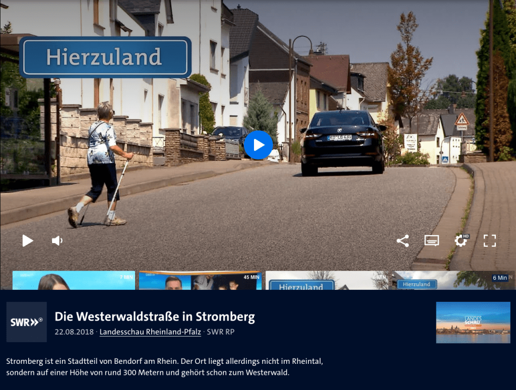 2018 war ein Team des SWR Rheinland-Pfalz in Stromberg und hat einen Film über die Westerwaldstraße gedreht …
