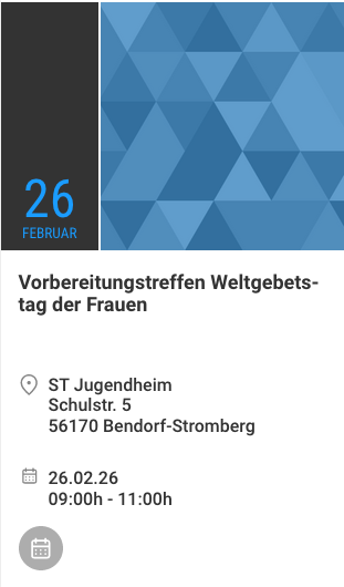 An einem Vorbereitungstreffen am Donnerstag, 26. Februar 2026, von 9.00-11.00 Uhr im Pfarrheim Stromberg üben wir gemeinsam zwei Lieder für diesen Gottesdienst ein.